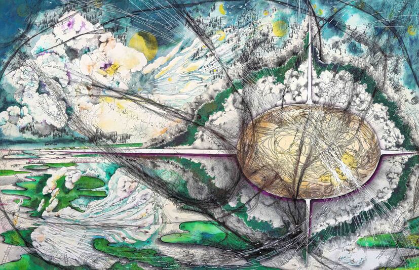 Read more: Fathers House. Acrylic pencil oil pastel ink on paper. 80x80 cm. 2025